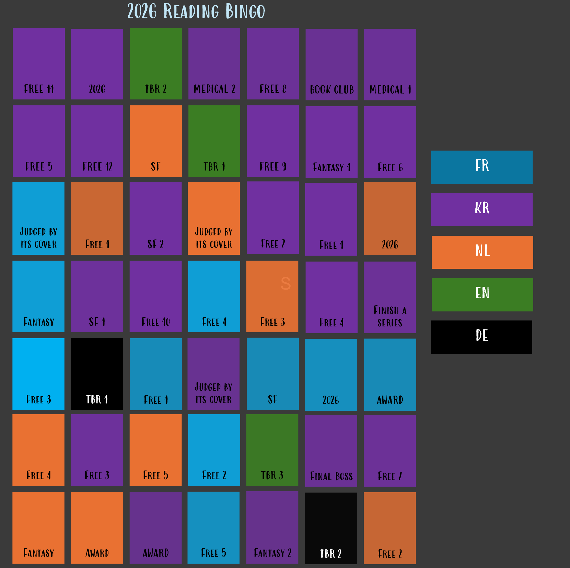 With a 7x7 bingo, a still relatively slow reading speed in a few of these languages (especially KR), and considering I have no idea what’s in store for me next year, I am not aiming for a blackout… but completing a few bingos (more than in 2025
