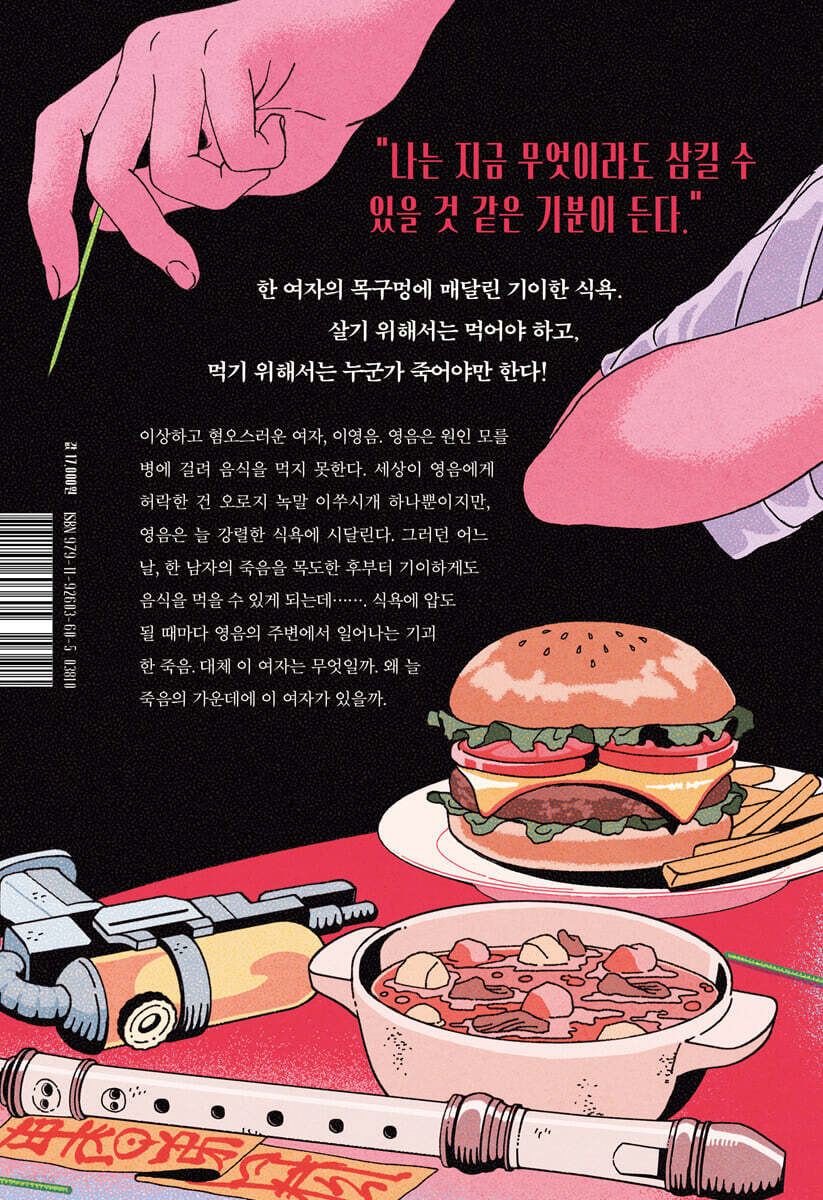 Also a physical read! Randomly bought it because I loved the cover. The story tells about about 이영음– a frighteningly thin woman who can only crunch on bamboo toothpicks for her food. It also seems that death follows her…