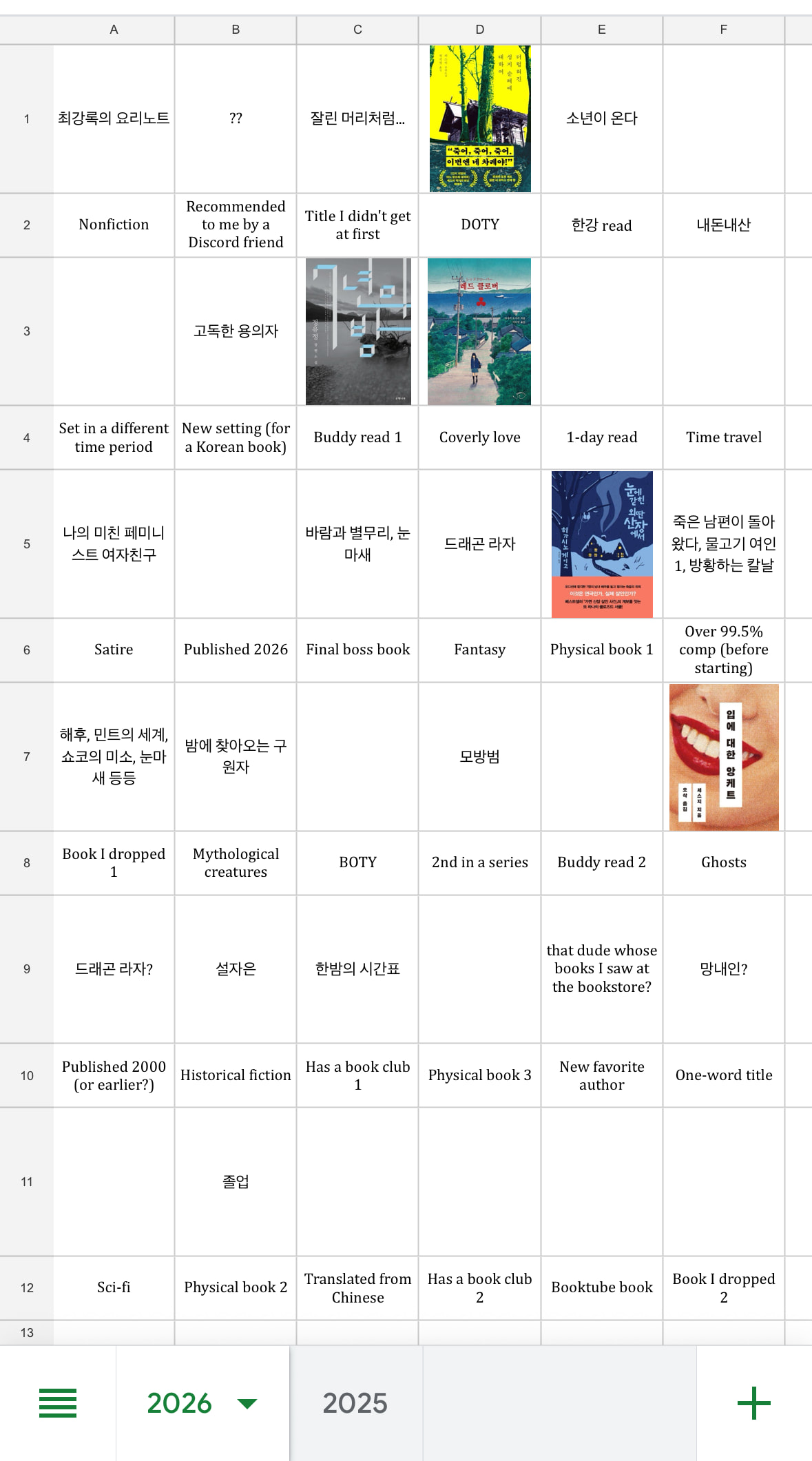 you may notice that there is a new book in the DOTY space. Yep, right after I read what I thought would be my worst book of the year, I read one that was worse. 더럽혀진 성지순례에 대하여 was just hard to read (think several chapters made up entirely of 3 characters talking to each other with no dialogue markers at all) and had no impact, unlike the first book. So I moved Red Clover to coverly love since I fell for it based on the cover. Here’s hoping I don’t find a worse book than this.