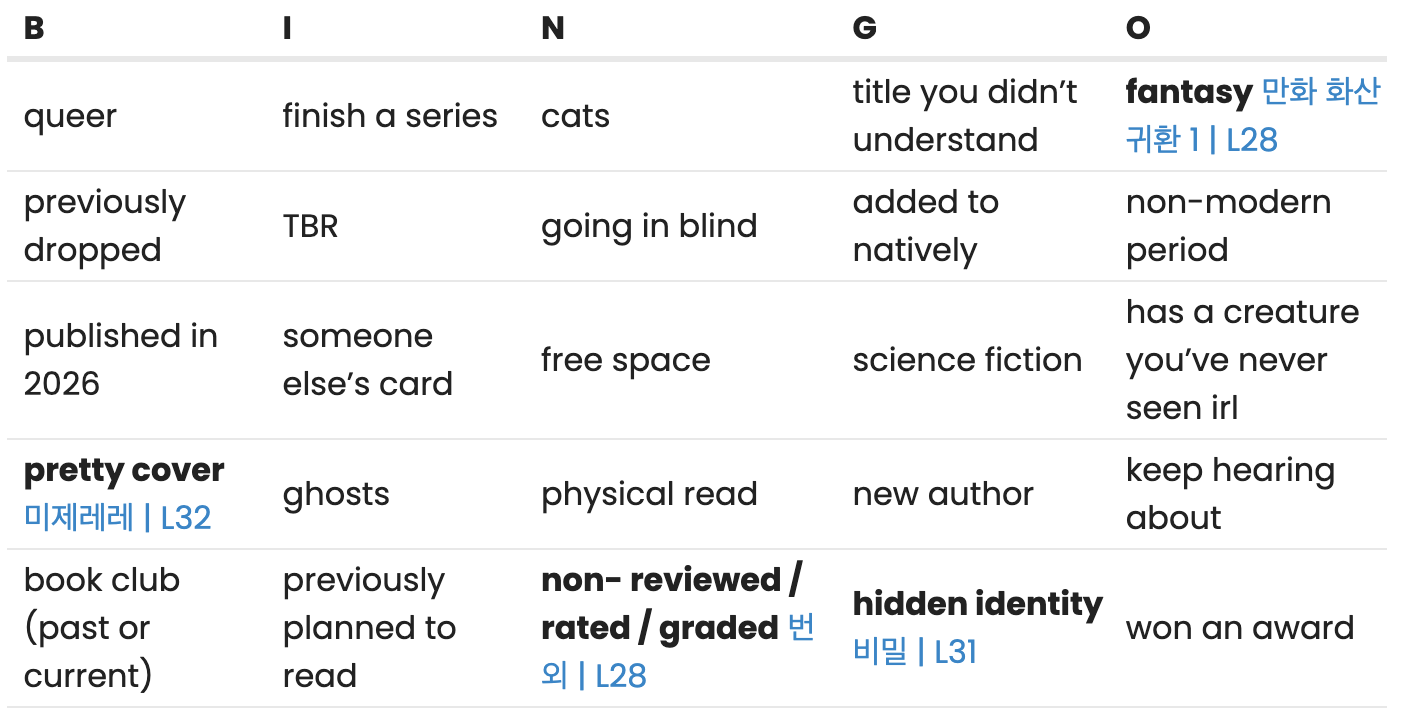 And finally, I’ve just finished 죽고 싶지만 떡볶이는 먹고 싶어 | L30 ! I’m kinda ambivalent on that one, I know this a super popular book so I was expecting more and it unfortunately didn’t deliver. The format of the bulk of the book being therapy sessions was interesting, nothing like anything I’ve read before, but reading someone else’s therapy sessions is only so interesting. I actually liked the second part better, but that was unfortunately just 1/5th of the book at best. Either way, this naturally goes into my nonfiction square!