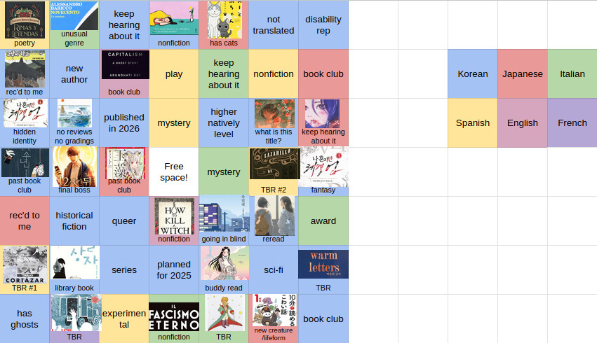 Next we move on to Korean with 김 대리가 죽었대 | L30?? ! This was a library book, and I am happy to report that I managed to finish it before the end of my hold. I most definitely recommend this. It’s a bit of a peculiar style, a dark comedy wrapped around a mystery, but if you go in expecting a traditional mystery you’ll be disappointed. Overall it was very interesting though, with lots of unexpected but funny scenes, and as a bonus a commentary on how people with invisible disabilities are perceived by most able-bodied people. This was definitely harder than expected language wise (I was not ready for so much medical vocab), but I made it, with the reward of being able to enjoy a good book as well. I’ve put this in my going in blind square, because all I really did prior to picking this book was confirm the page number (so that it’d be feasible for me to read it in under a week), the title, and then I just saw that it was a funny.