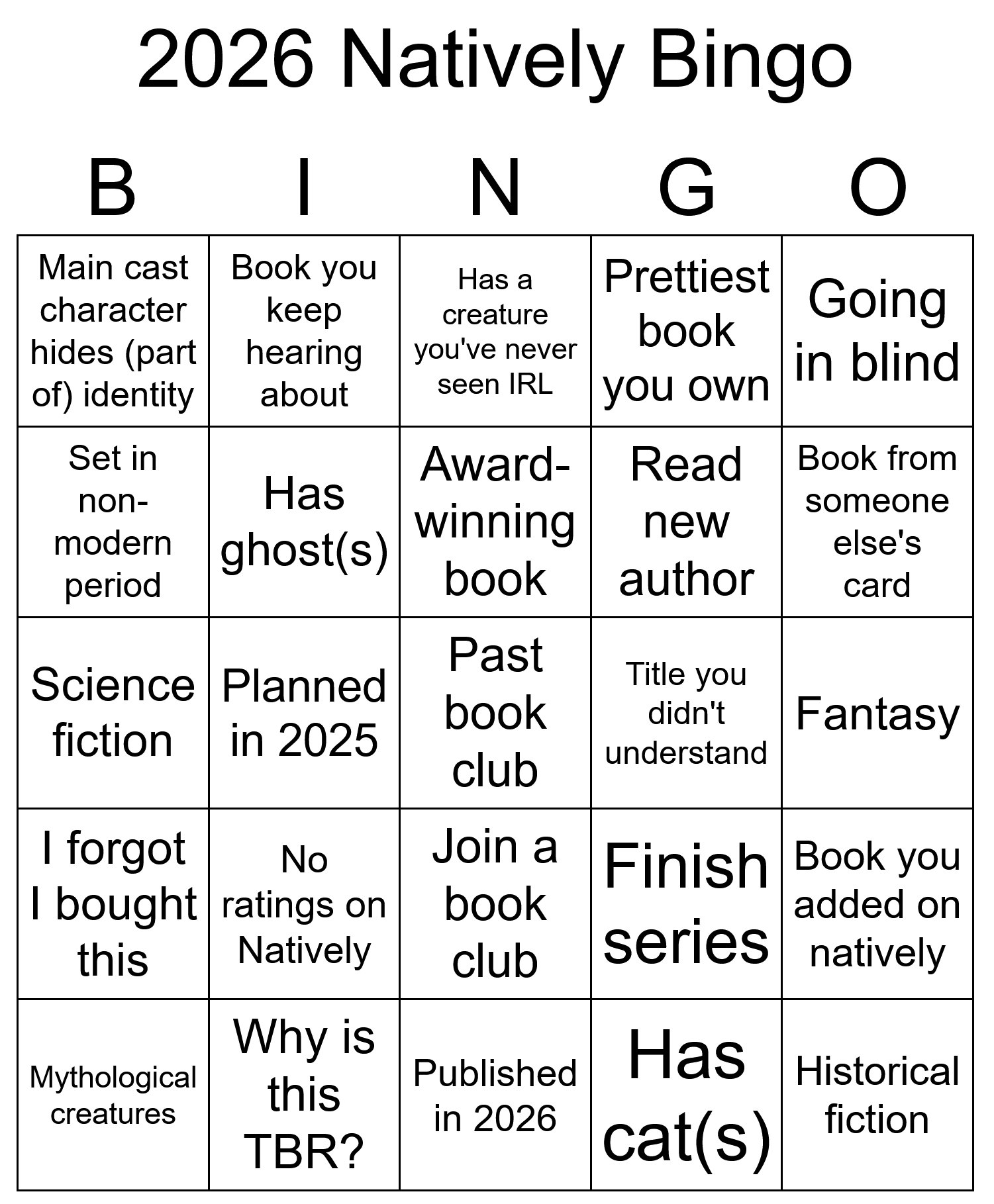 With my 2025 bingo complete today, here is my shiny new 2026 card: