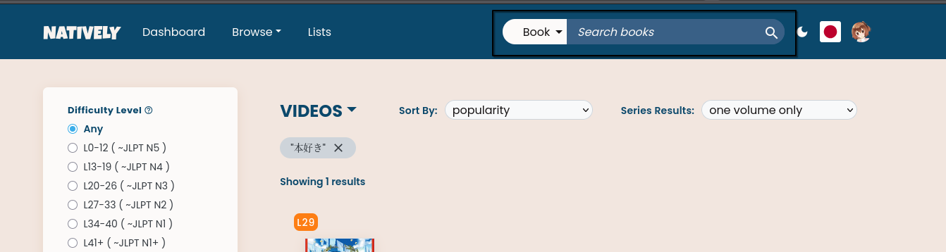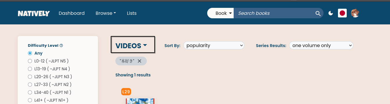 - If you are on a video listing page, the search box at the top should default to video search, not book search