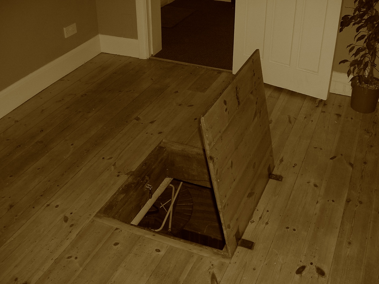 A possible thought about the hidden room. I think it is described as being between the first and second floors. Is this between the ground floor and a floor above? Or between the ground floor and the basement room? If the former, I find it very strange how it could fit. If the latter, I had an idea that the house is built on sloping ground down to the river. Then there could be a main house that juts out and is built up, with underneath the basement room - and a triangular non-usable space. The hidden room could be within that?? But it that were the case, the obvious entry point would be from the basement, rather than through the floorboards?