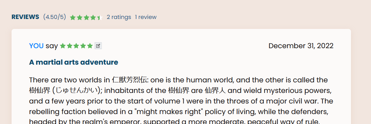 Description of your request or bug report: I just posted a review for 仁獣芳烈伝 1巻 | L27 today, March 30, 2026, but the review date shows as December 31, 2022 for some reason.