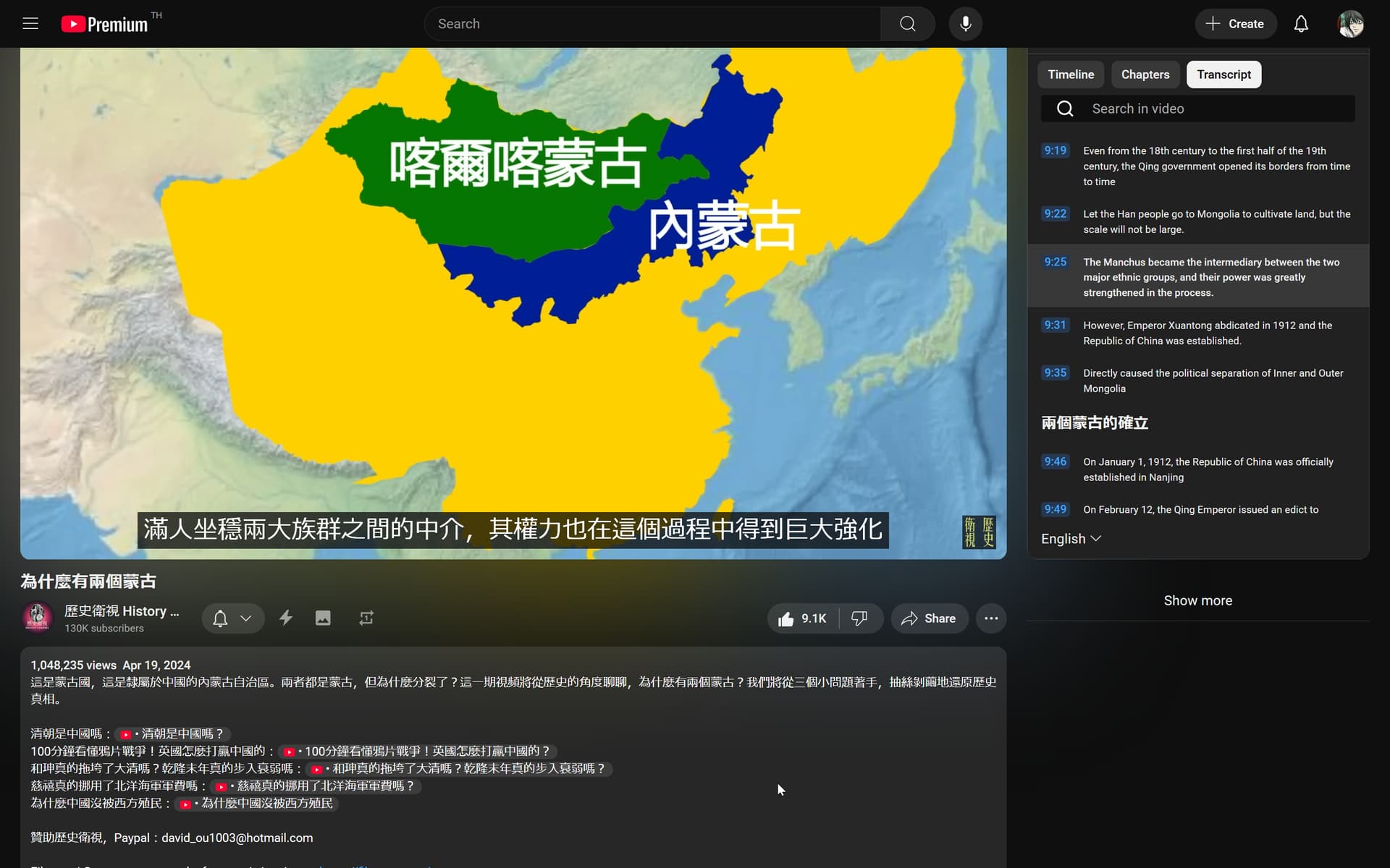 I was listening to Why outer/inner Mongolia, which has toggleable CN and EN sub, or all can be turned off.