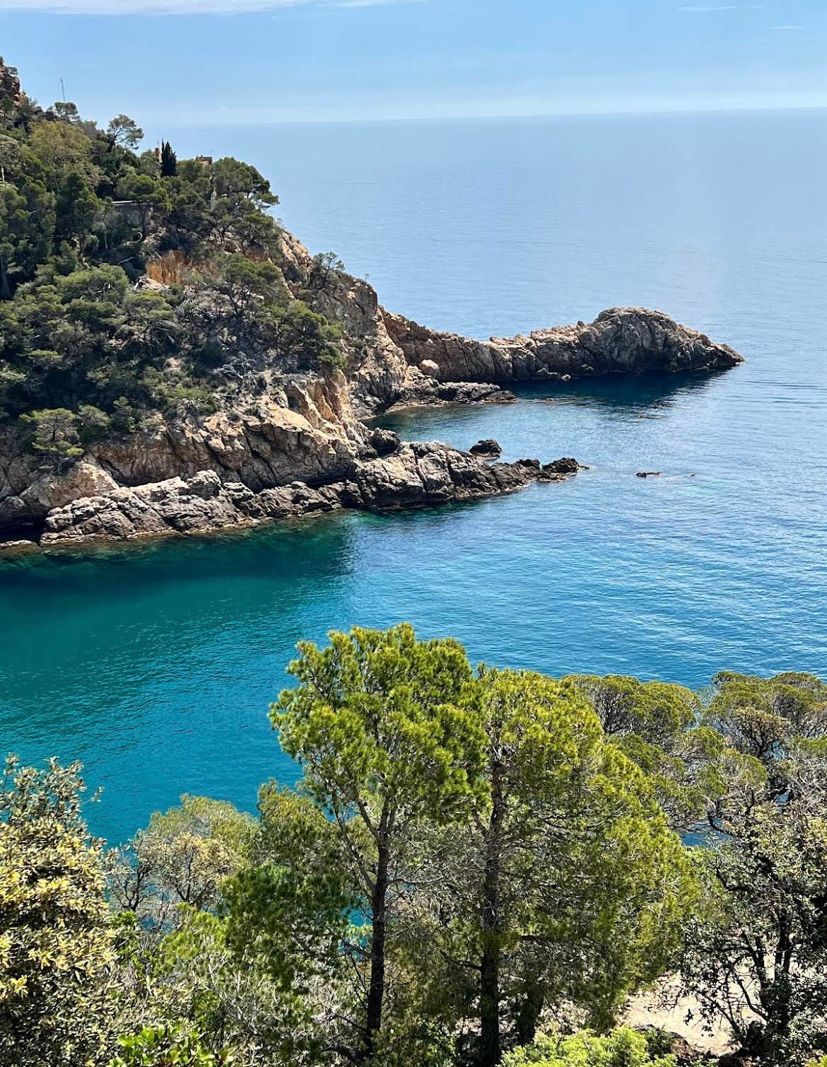 I enjoyed following along with the journey in this chapter on Google maps. The winding coastal road from Tossa de Mar towards Sant Feliu de Guixols is on the map. Below is a view from the road pulled from a lookout point on Google maps: