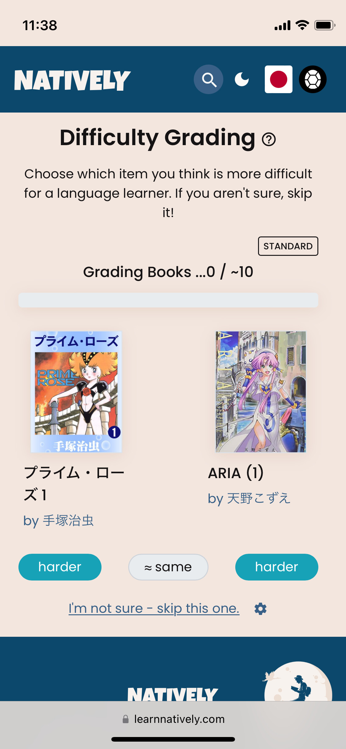 I’ve heard a lot of people say things like this in Japanese which feels wild to me at my level. I wonder if it would be feasible to have a notion of a user’s read/watch level and if it’s a book that is too far away from that in either direction either not prompt the user to grade, or only ask for very large grading differences. I may be a native speaker, but I can tell you that Hop on Pop is easier to read than Shakespeare, for example.
