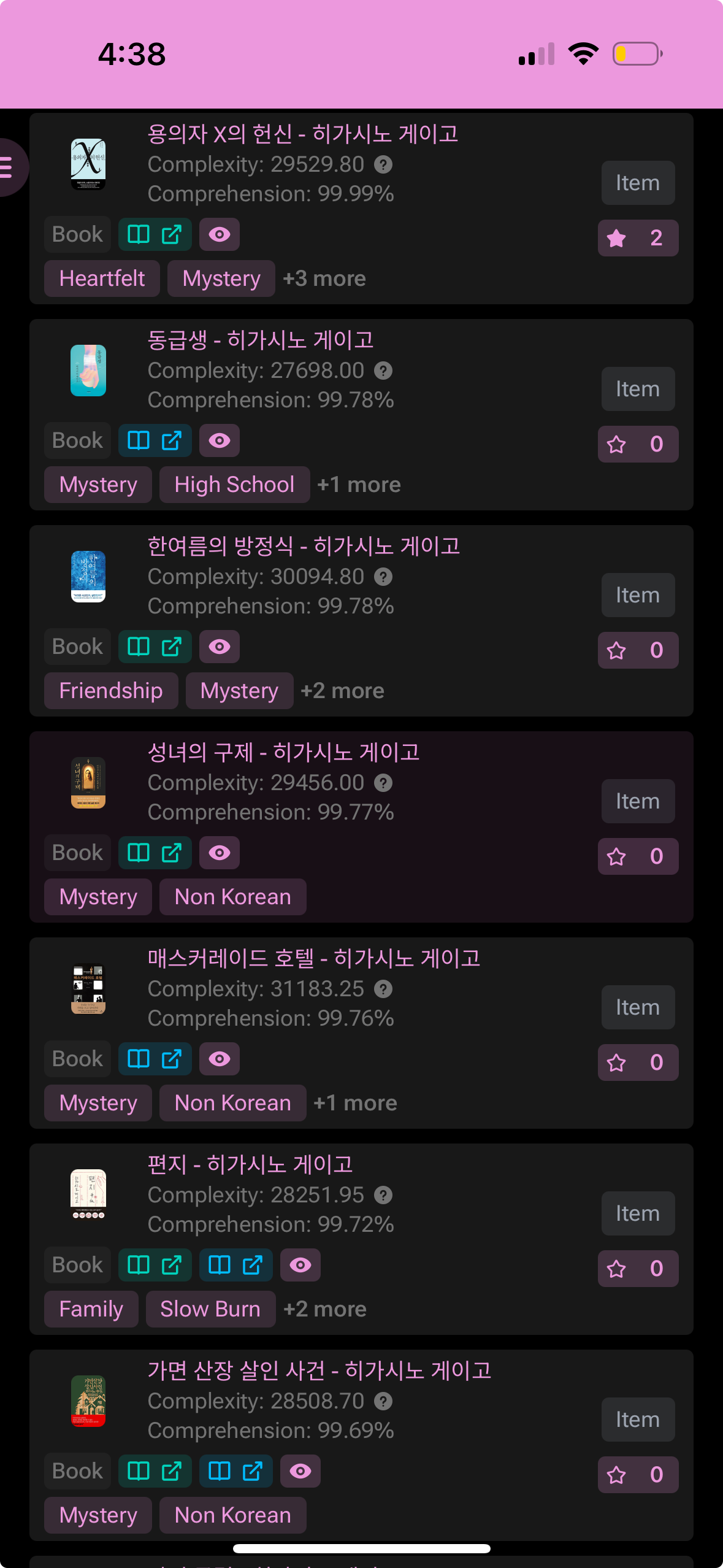 Hmm, can’t really say that I feel much confidence here. I think I overloaded on goals a bit. A little while ago I set daily reminders on my computer that I could check off after reading (Japanese), reading (English), studying, or translating for an hour. It hasn’t really helped because I get caught up on doing one thing for a longer period of time or because it can sometimes feel overwhelming so I don’t do much at all (especially after work). I think I might try to be more rigid with ticking those boxes for the first few weeks of the year, so I can figure out some sort of rhythm to get into. Also, maybe something to do would be to update my learning log at a fixed interval so that eventually the shame of writing “I didn’t do any listening” each week would drive me to action lol.