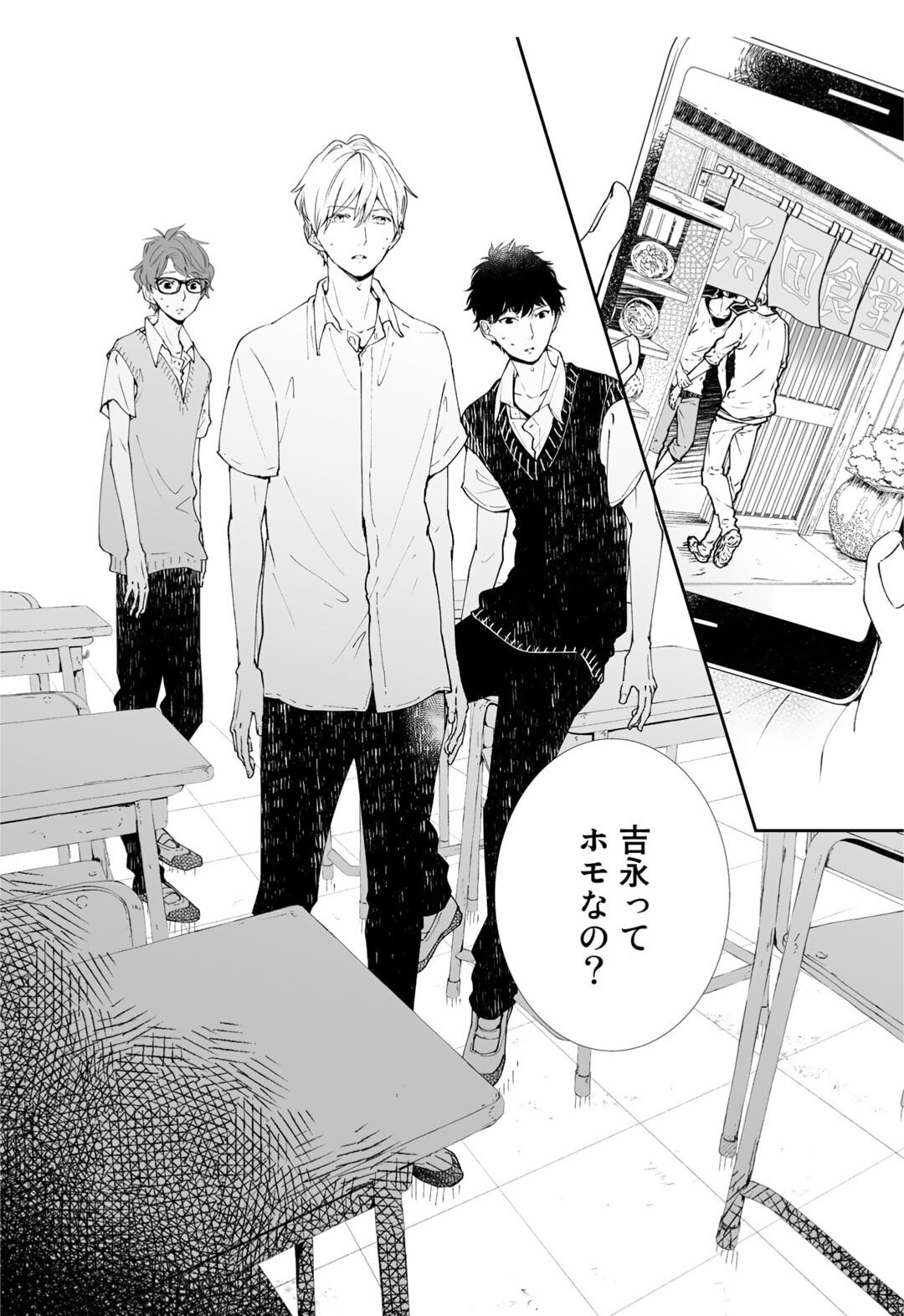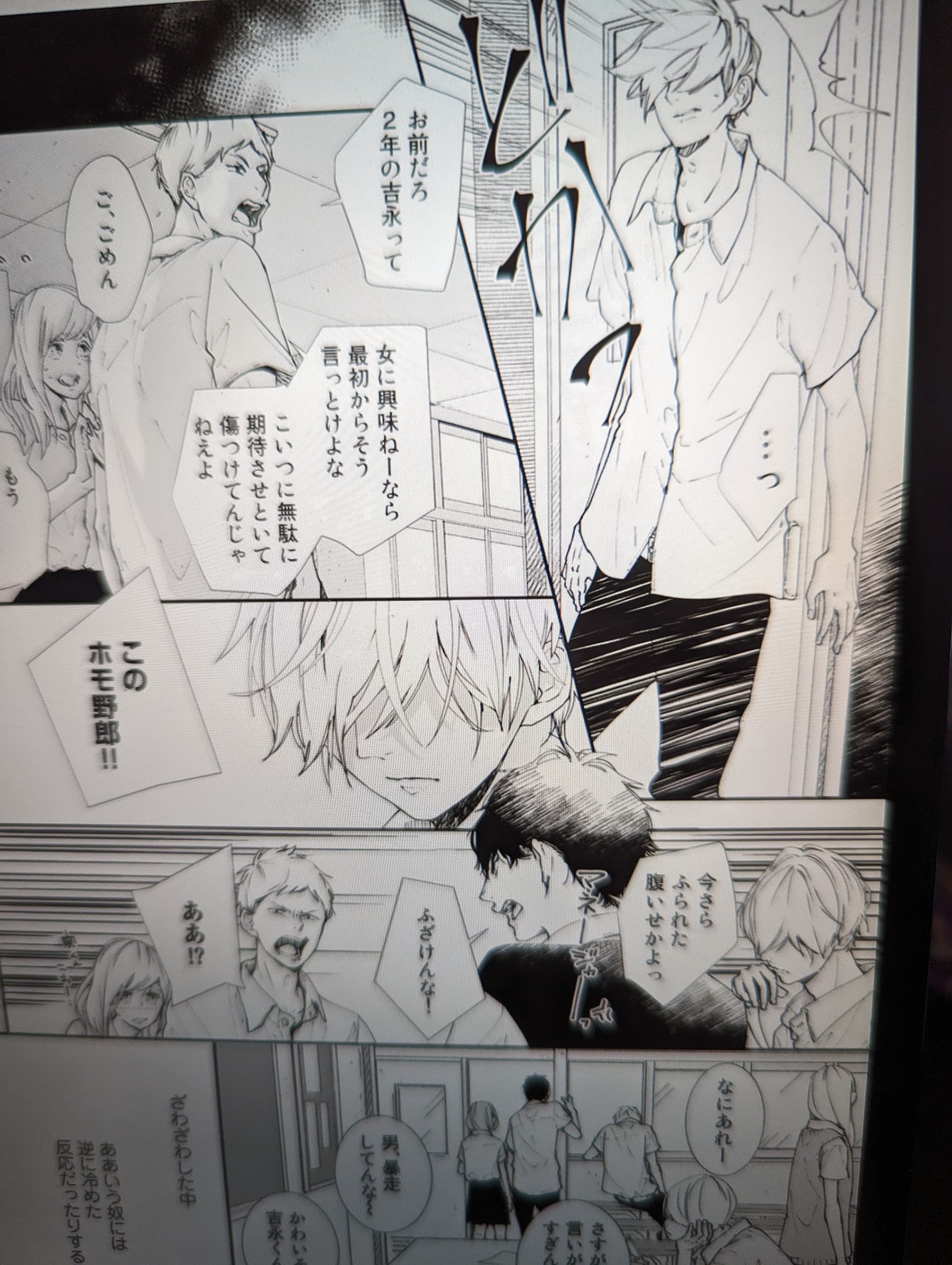 So the break-up finally happens, and our mystery photographer 土井 finally appears. Of course he’s going to out 大和 in front of the whole class. ![]()