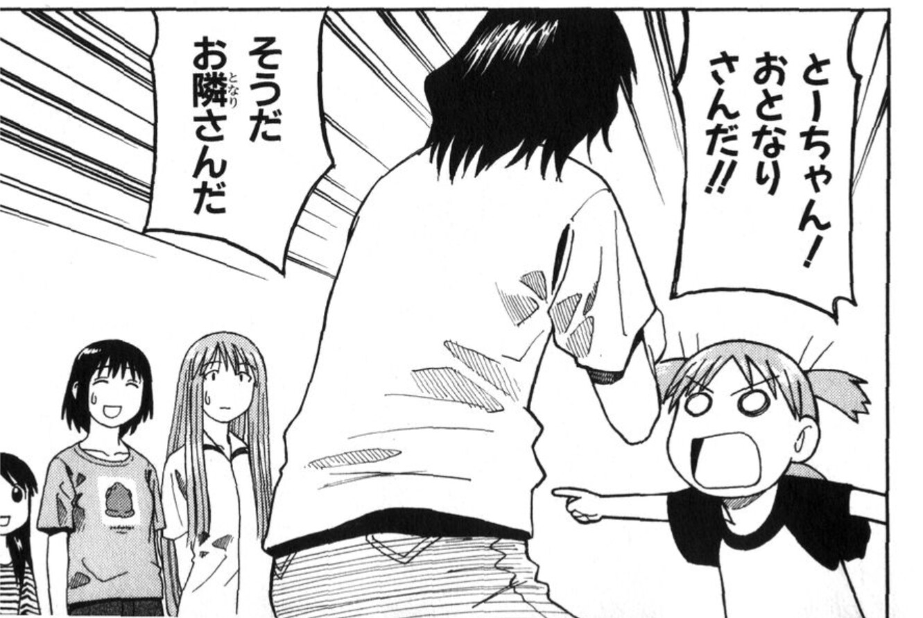 I finished the week 1 reading, and… well, just a quick look at the vocab sheet will tell you, I have a much harder time understanding Ayase’s formal speech than Yotsuba’s informal chatting.