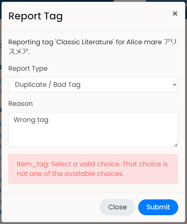 (Also, could one of the tag mods remove that tag? “Classic Literature” on Alice mare アリスメア | L29. I think the person who added it was thinking of fairy tales when they added that, but it’s the wrong tag for it.)