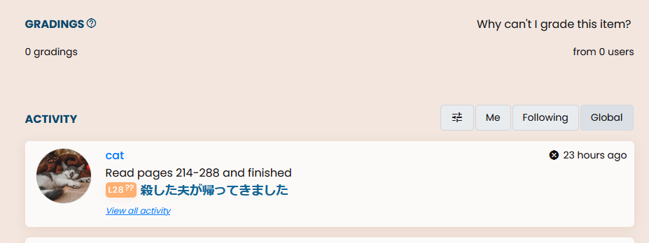 Grading seems to be broken for me again. This book I finished yesterday: 殺した夫が帰ってきました | L28??