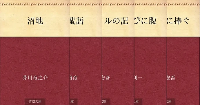 I’ll say the graphic of book covers is usually very cool, but when they’re all Aozora it’s a different look