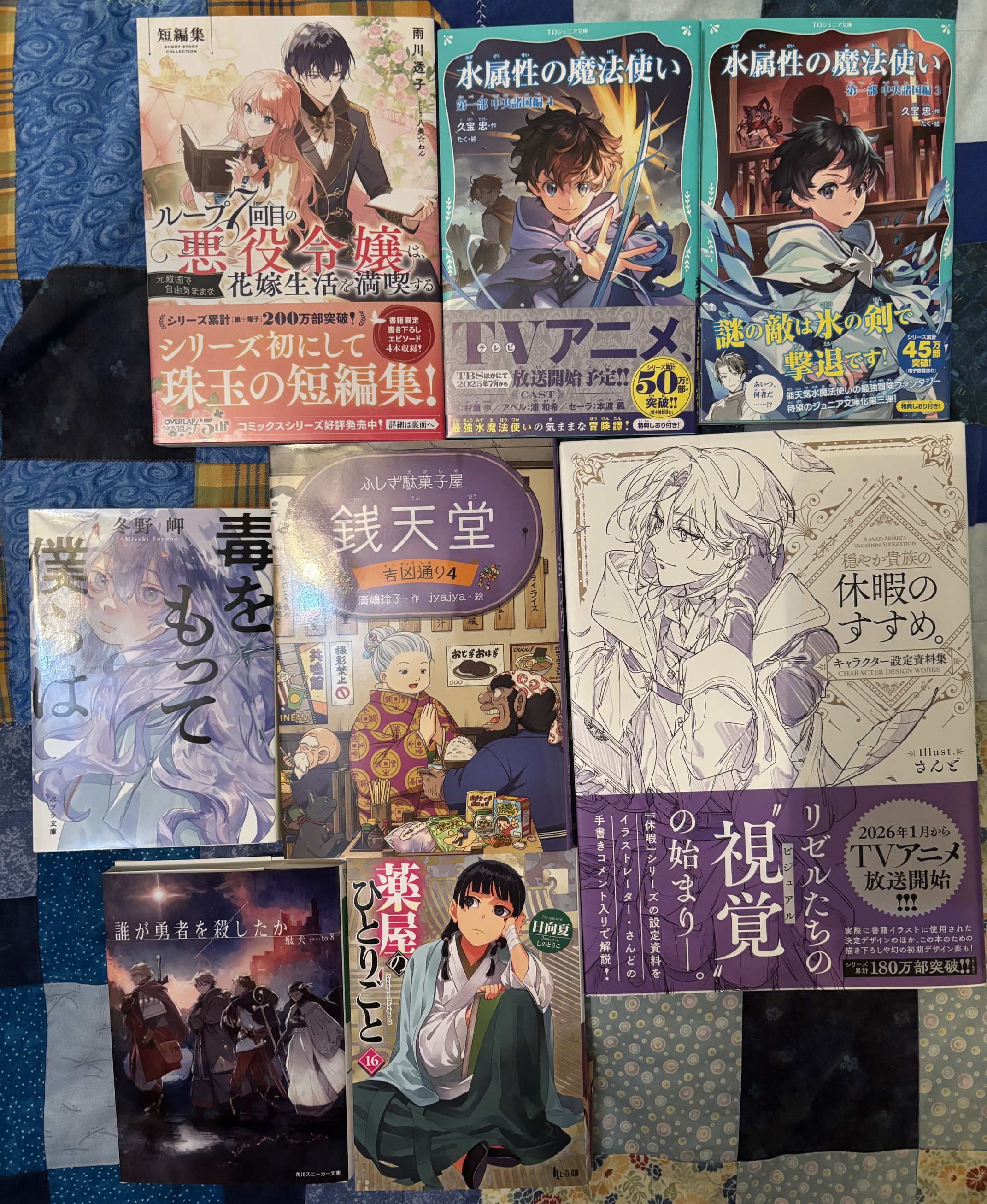 bottom left - 誰が勇者を殺したか, since I’ve been meaning to add it for a while, and the latest 薬屋のひとりごと, still not watched the anime yet.