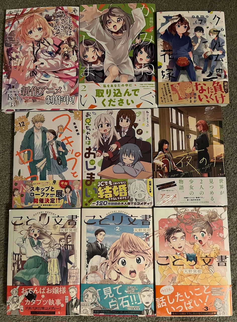 Bottom: ことり文書 | L25 (all three volumes) - I wasn’t sure whether to bother buying this physically since I already bought the first digitally and it’s good quality. But I’m glad I got it now since it’s got a nice-feeling cover.