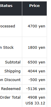 22160円 ($149.97 USD)… Original subtotal was 7716 (~$51.90) - for 29 manga volumes (17 of which are OOP) & 1 manga magazine. Digitally (Amazon) it would have been 21304円