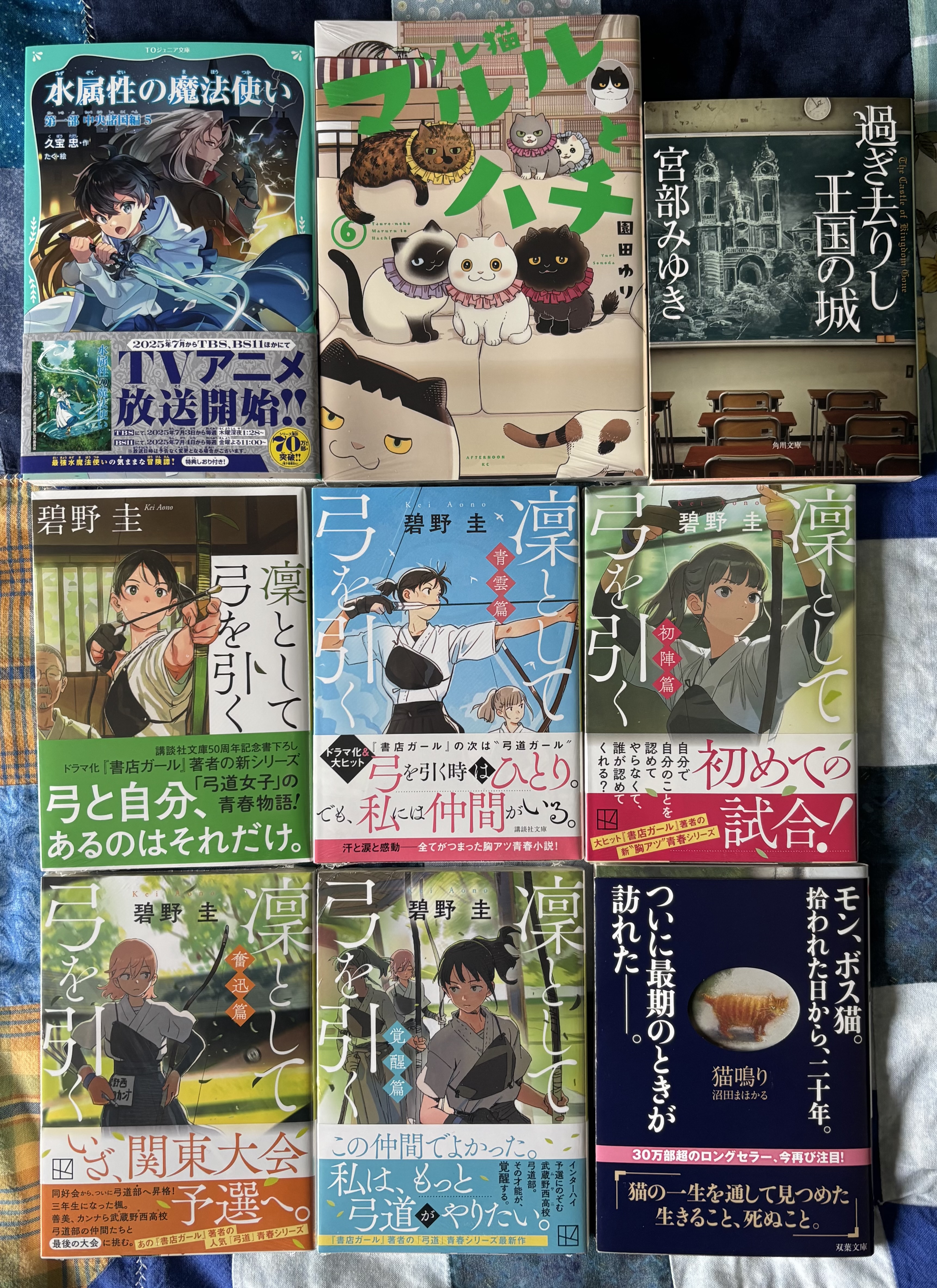 part 5 of 水属性の魔法使い series from above, most recent manga volume of ツレ猫 マルルとハチ, and then 過ぎ去りし王国の城, liked the premise and thought it might be quite a good read.