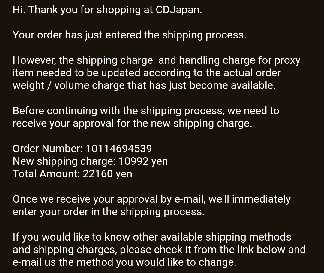 Well now I’m curious and have to know what the bill ended up being and how it worked out My money is on the shipping cost increased somehow…