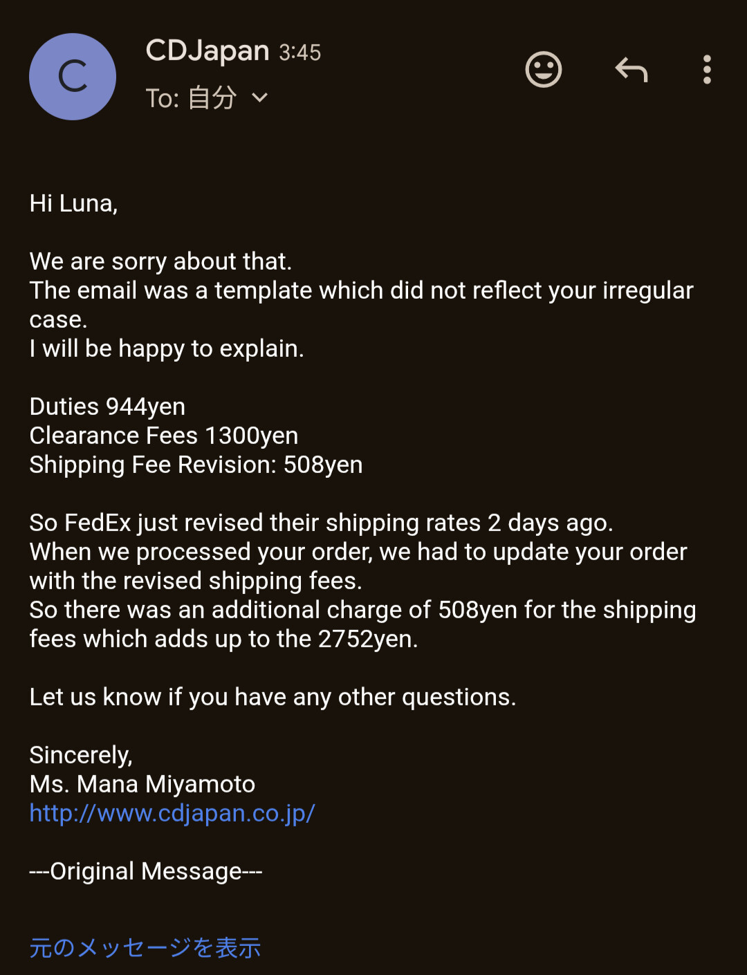 yeah probably though when this started I emailed them a couple of times before they finalized my credit card and got this wishy washy response that never answered my question (which is right in line with Japanese indirectness…but also annoying)