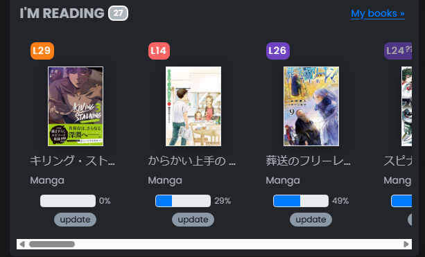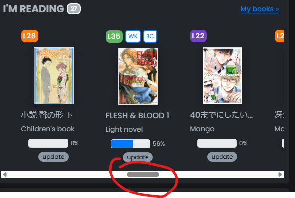 (9 LNs and 50 vol of manga) but using that as a place holder of everything that’s either to be started or in progress as I go along…