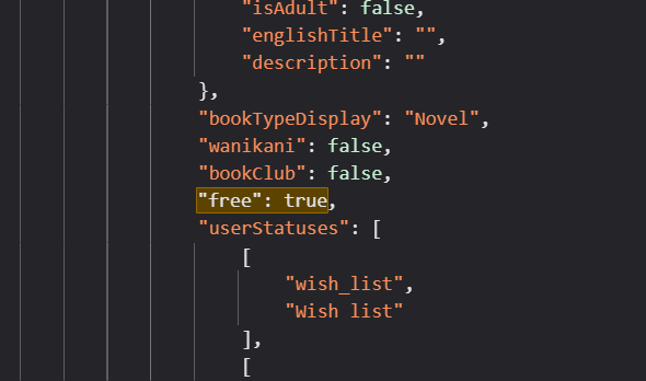 I was curious how easy it would be to just, find out via a script how many of my wishlisted books are free. Turns out the api that tells you what books you own/wishlisted also has the data on whether it is free or not