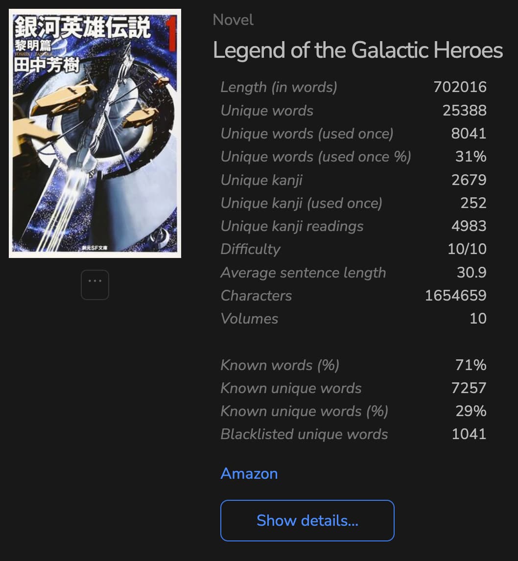 Speaking of, rumour has it that こう, the keeper of jpdb.io, which has all manner of statistics for the works in its database, is likely willing to collaborate with Natively and cross-link databases. jpdb–Natively crossover when???