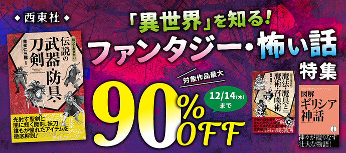 And 異世界 related fact books (about legendary monsters & heroes for 99 EN + increased coin back until 12/8: