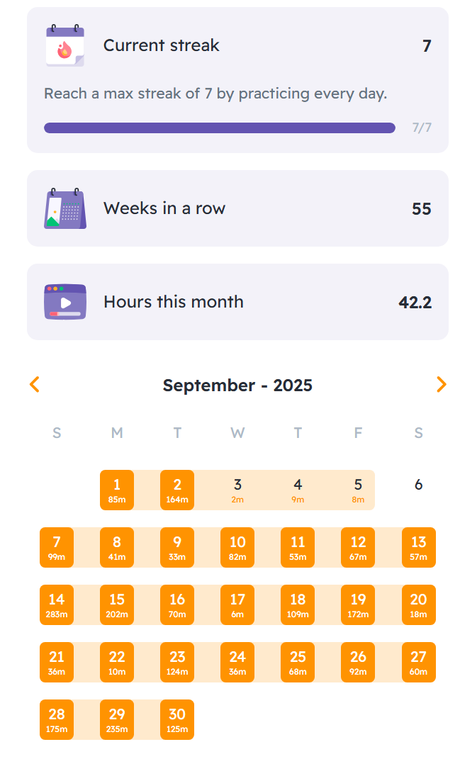 I started off pretty rough in the first week, but I finished strong. I’ve now reached a total of 400 hours of Spanish input. As planned, I wrapped up all the free intermediate videos on Dreaming Spanish and moved on to some advanced ones. I usually stick to the videos with a Spanish accent, but whenever I got bored, I mixed things up with some beginner and intermediate Latin American videos too.