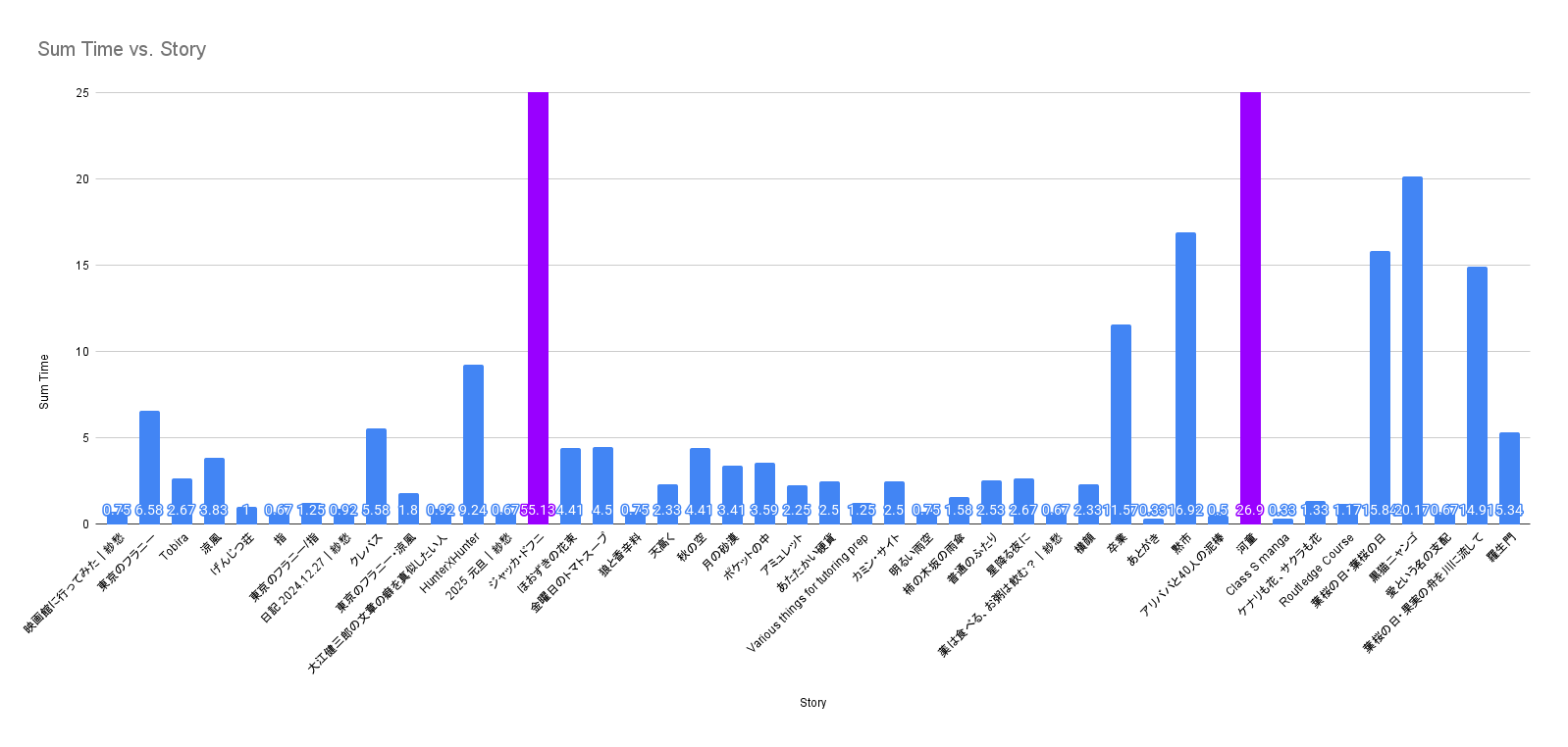 I think it’s worth noting that I was marginally employed for a chunk of the spring and fall in 2024, so I could spend quite a bit of time most days.