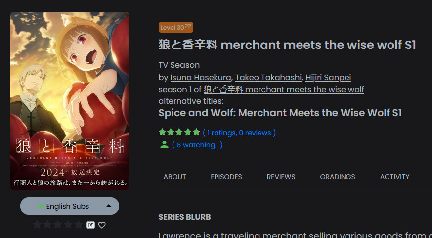I just checked again, and Netflix JP is getting the new Spice and Wolf. So I’ll probably check out the first episode. If it’s stupidly hard I may just drop it or swap it for English subs though.